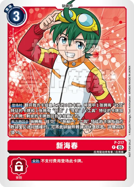 自分のターン自分のデジモンに特徴に「ソーシャル」/「ナビ」/「ツール」を持つカードがリンクしたとき、このテイマーをレストさせることで、メモリー+1。