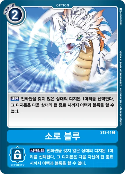 セキュリティ進化元を持たない相手のデジモン1体を選ぶ。そのデジモンは次の自分のターン終了時までアタックとブロックができない。