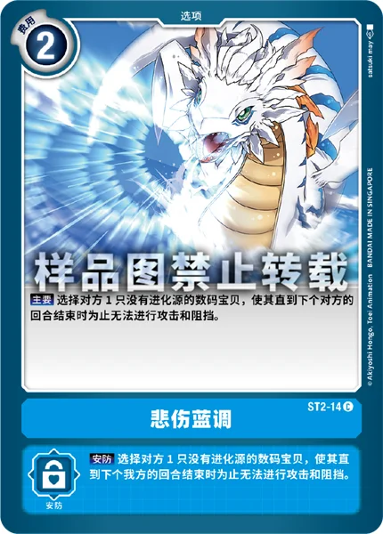 メイン進化元を持たない相手のデジモン1体を選ぶ。そのデジモンは次の相手のターン終了時までアタックとブロックができない。
