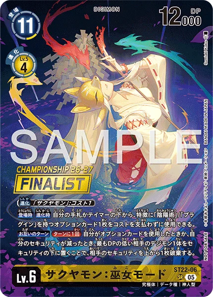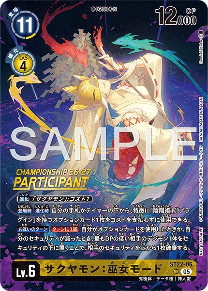 登場時 進化時自分の手札かテイマーの下から、特徴に「陰陽術」/「プラグイン」を持つオプションカード1枚をコストを支払わずに使用できる。