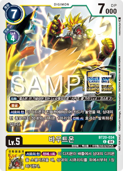 진화 「펄스몬」이 기술되어 있는 Lv.4/특징으로 「시커즈」를 가진 Lv.4 : 코스트 3불굴 서로의 턴이 디지몬의 진화원에 테이머 카드가 놓였을 때, 상대의 턴 종료까지 상대의 디지몬 1마리의 진화 시 효과는 발휘하지 않는다.