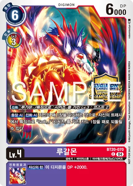진화 「루가몬」/특징으로 「시커즈」를 가진 Lv.3 : 코스트 2등장 시진화 시자신의 패 1장을 파기하는 것으로, 자신의 트래시에서 특징으로 「SoC」/「시커즈」를 가진 카드 1장을 패로 되돌릴 수 있다.