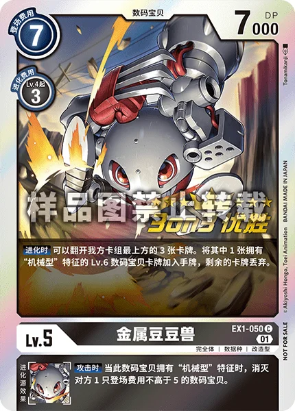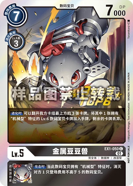 어택 시 이 디지몬이 특징으로 「머신형」을 가질 때, 등장 코스트 5 이하의 상대 디지몬 1마리를 소멸시킨다.