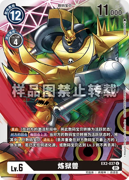 상대의 턴턴에 1회상대의 디지몬이 액티브 상태가 되었을 때, 그 디지몬 1마리를 퇴화 1 (상대 디지몬 위에 포개진 카드를 위에서부터 1장 파기한다. 진화원이 없어지거나, Lv.3의 디지몬이 되었다면 그 이상 파기할 수 없다)한다.
