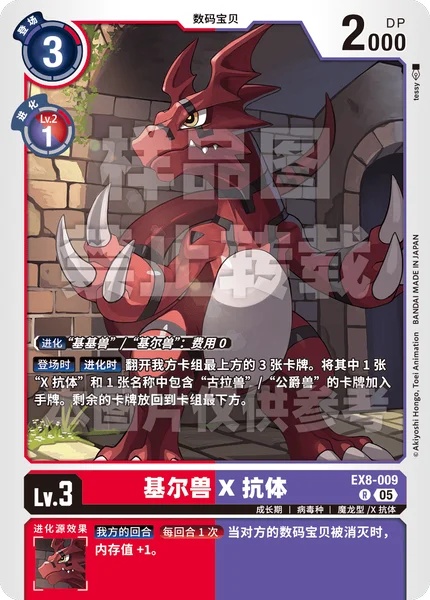 진화 「기기몬」/「길몬」 코스트 0등장 시진화 시자신의 덱 위에서부터 3장 오픈한다. 그중 명칭에 「그라우몬」/「듀크몬」을 포함하는 카드 1장과 「X항체」 1장을 패에 추가한다. 나머지는 덱 아래로 되돌린다.