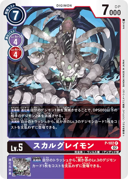 소멸 시자신의 트래시에서 퍼플/레드인 Lv.3의 디지몬 카드 1장을 코스트를 지불하지 않고 등장시킬 수 있다.