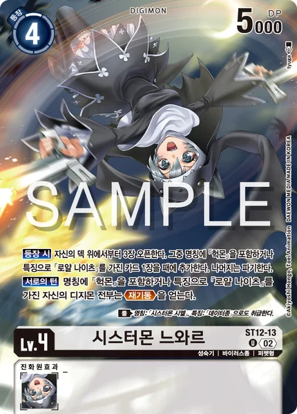 「※명칭:「시스터몬 시엘」, 특징:「데이터종」으로도 취급한다」는 효과가 아닌, 이 디지몬의 특별 룰입니다. 그러므로 패나 육성 에어리어, 그외 어느 장소에서도 이 텍스트는 유효합니다.