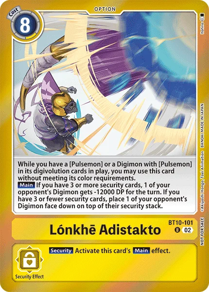 我方场上存在“脉冲兽”或进化源中持有“脉冲兽”的数码宝贝期间,可以无视颜色条件使用此卡牌。