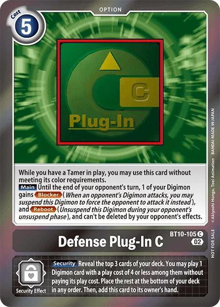 主要直到下个对方的回合结束为止,我方的1只数码宝贝获得阻挡者(当对方的数码宝贝进行攻击时,可将此数码宝贝转换为休息状态,并将对方的攻击目标转换为此数码宝贝)和重启(在对方的激活阶段中,将此数码宝贝转换为活跃状态)效果,不会因对方的效果而消灭。