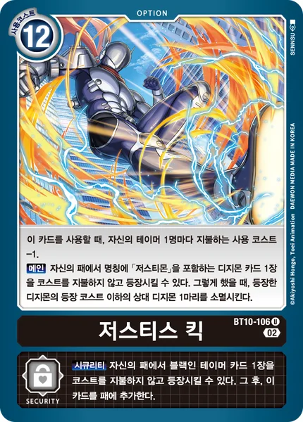 主要可以从我方的手牌中,不支付费用登场1张名称中包含“正义兽”的数码宝贝卡牌。那样做时,消灭对方1只登场费用不高于所登场数码宝贝的数码宝贝。