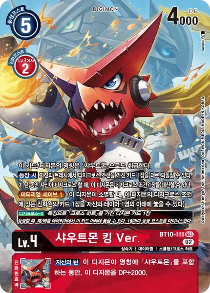 我方的回合此数码宝贝的名称中包含“高吼兽”期间,此数码宝贝的DP+2000。