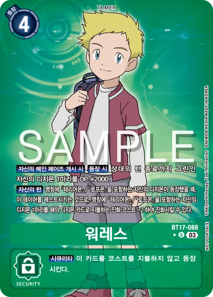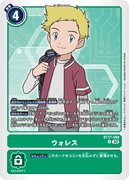 我方的主要阶段开始时登场时直到对方的回合结束为止,我方1只绿色数码宝贝的DP+2000。