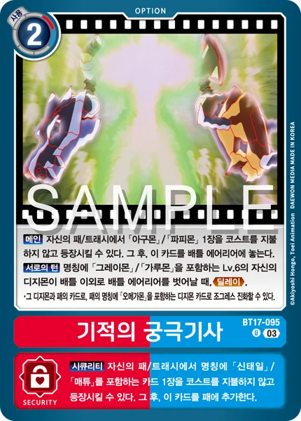 安防可以从我方的手牌/废弃区中,不支付费用登场1张名称中包含“八神太一”/“石田大和”的卡牌。此后,此卡牌加入手牌。
