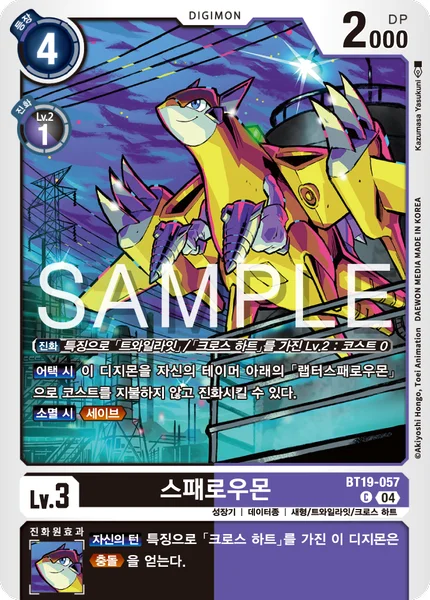 攻击时可以不支付费用将此数码宝贝进化成我方驯兽师下方的“猛禽麻雀兽”。 消灭时保存