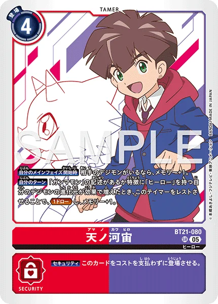 我方的回合当我方记述有“伽马兽”或拥有“HERO”特征的数码宝贝的进化源因效果而增加时,可将此驯兽师转换为休息状态,并抽1张卡,且内存值+1。