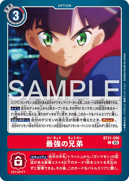 双方的回合当我方数码宝贝的进化源因效果而增加时,延迟。 ·可以不支付费用将我方1只数码宝贝进化成手牌中记述有“伽马兽”的数码宝贝卡牌。