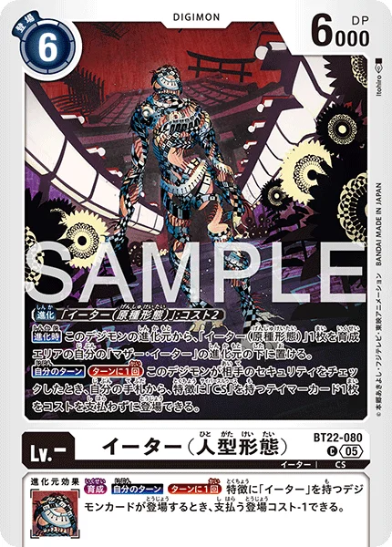 进化时可以从此数码宝贝的进化源中,将1张“侵食者(原种型态)”置于我方养成区中的“侵食者母体”进化源最下方。