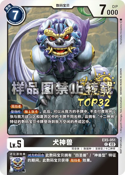 对方的回合此数码宝贝拥有“四圣兽”/“神兽型”特征的期间,此数码宝贝获得阻挡者效果。