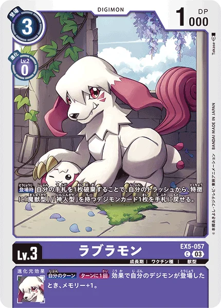 登场时可丢弃我方的1张手牌,并可以从我方的废弃区中,将1张拥有“魔兽型”/“神人型”特征的数码宝贝卡牌放回到手牌中。