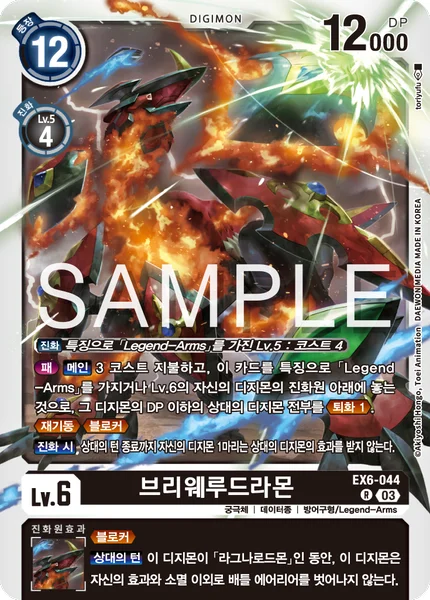 手牌主要可支付3费用,然后将此卡牌置于我方1只拥有“Legend-Arms”特征或Lv.6的数码宝贝的进化源最下方,并将对方所有DP不高于该数码宝贝DP的数码宝贝退化1。 阻挡者重启