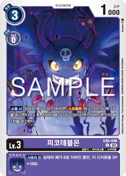 双方的回合对方持有的手牌不多于6张期间,此数码宝贝的DP+1000。