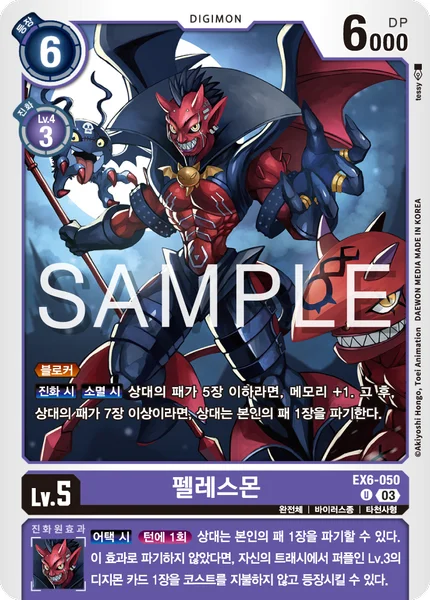 攻击时每回合1次对方可以丢弃其1张手牌。若没有丢弃,则可以从我方的废弃区中,不支付费用登场1张Lv.3的紫色数码宝贝卡牌。