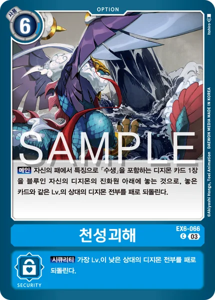 主要可从我方的手牌中,将1张特征中包含“水栖”的数码宝贝卡牌置于我方1只蓝色数码宝贝的进化源最下方,并将对方所有与放置的卡牌Lv.数值相同的数码宝贝放回到其手牌中。