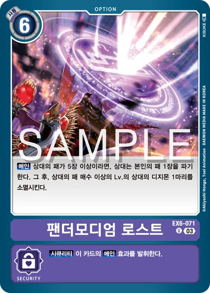 主要若对方持有5张或更多手牌,则对方丢弃其1张手牌。此后,消灭对方1只Lv.数值为对方手牌张数或更高的数码宝贝。
