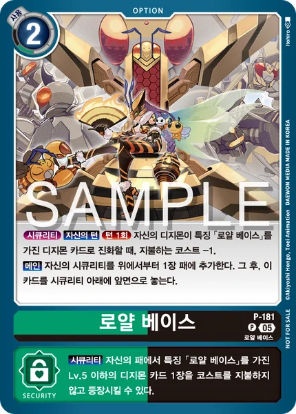 安防 我方的回合 每回合1次当我方数码宝贝将要进化成拥有“皇家基地”特征的数码宝贝卡牌时,需支付的进化费用-1。